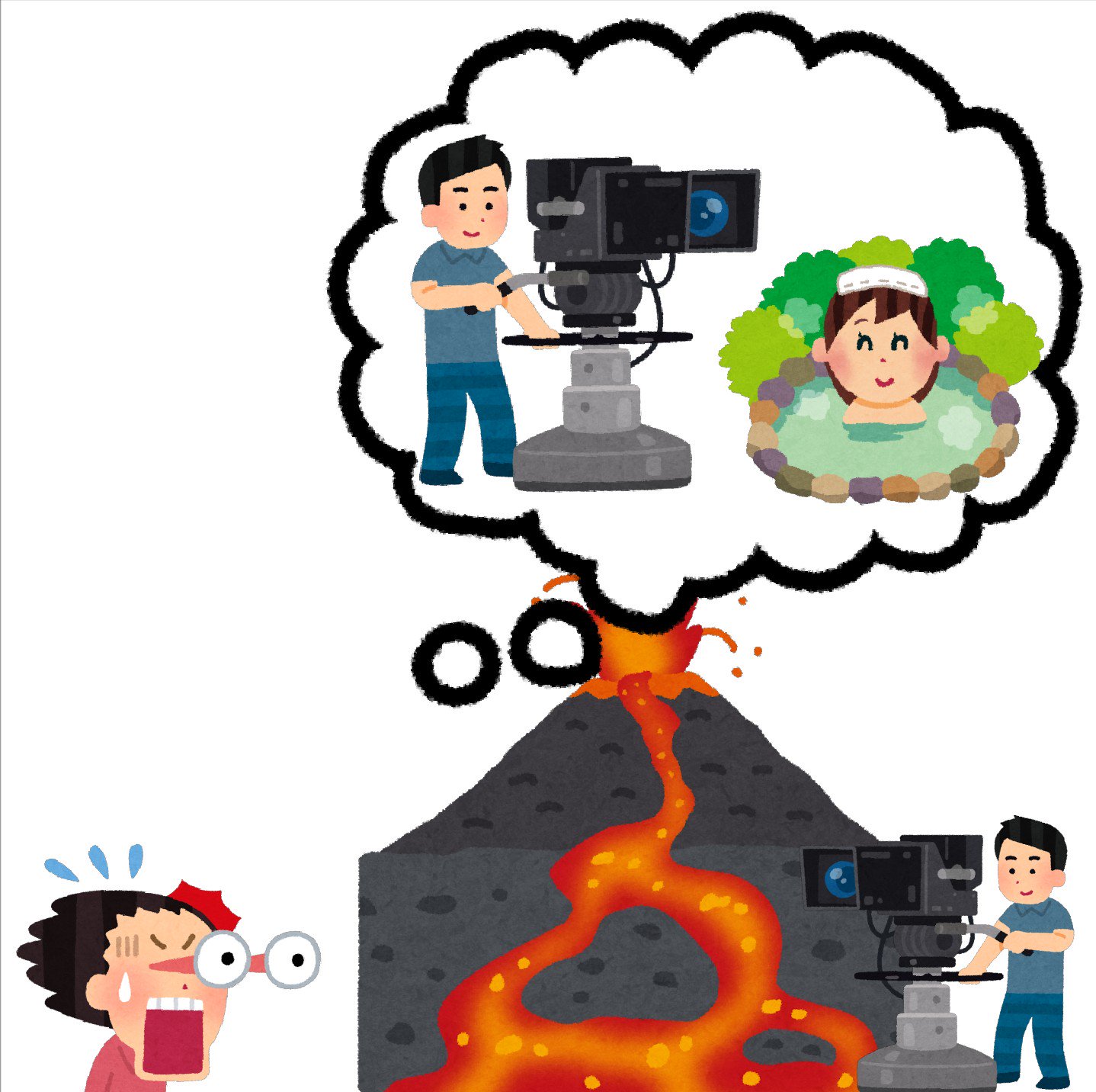 Twitter 上的 まいチクをいらすとやで再現 Dayukoume 再現難易度 使ったイラスト 5枚 ふきだしのイラスト カメラマンのイラスト テレビ 温泉のイラスト 女性 火山の噴火と溶岩のイラスト 驚いて目が飛び出る人のイラスト 女性 まいにちチクショー T