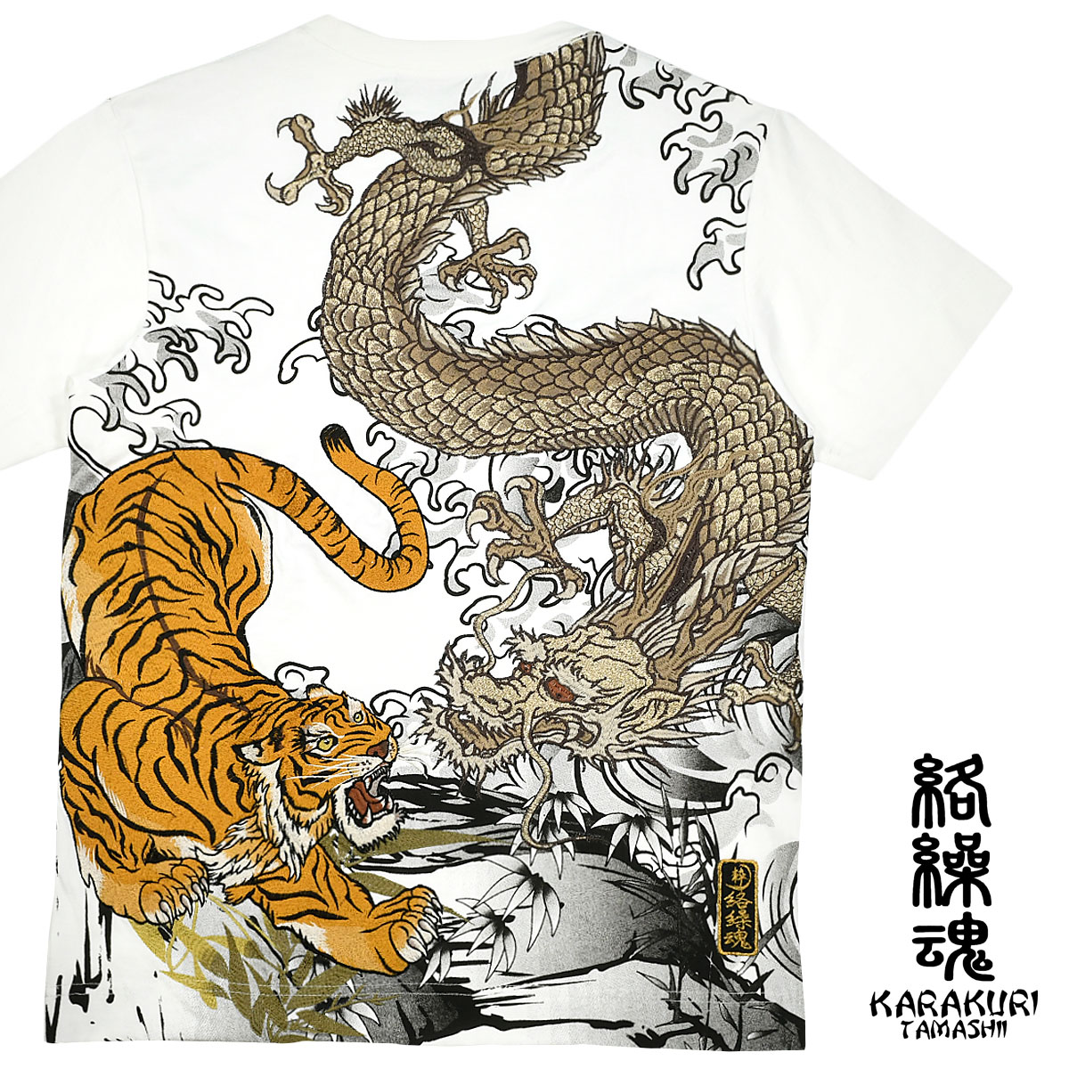 虎か龍か 白 バックプリント デザインtシャツ通販 Tシャツトリニティ